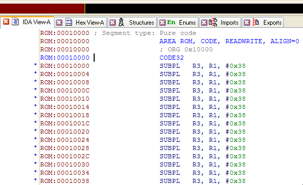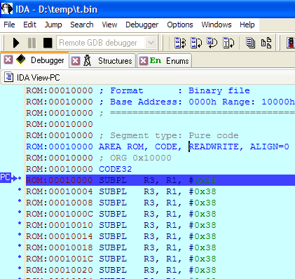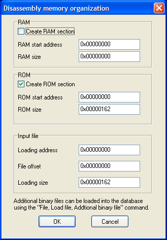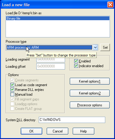 Since we know that the code is for ARM processor, choose ARM in the "Processor type" dropdown and click Set. Then click OK. The following dialog appears: